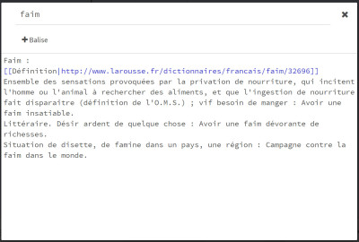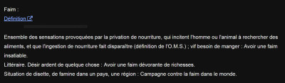 Facile également, si vous avez en tête le principe précédent : une définition vers le mot "faim" sur le Larousse en ligne se fera ainsi