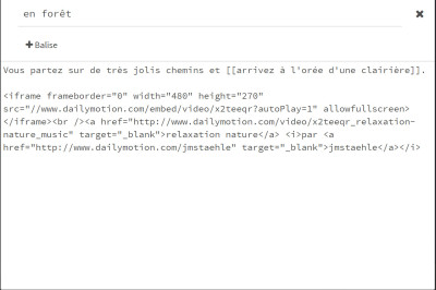 Pour pointer plus finement vers le même passage, vous pouvez inclure un mot clé dans votre lien, de cette façon : [[vous allez où ?|Chez Canopé]]. Cela vous permet d'amener le lecteur au même endroit sans qu'il ait à lire exactement la même phrase.